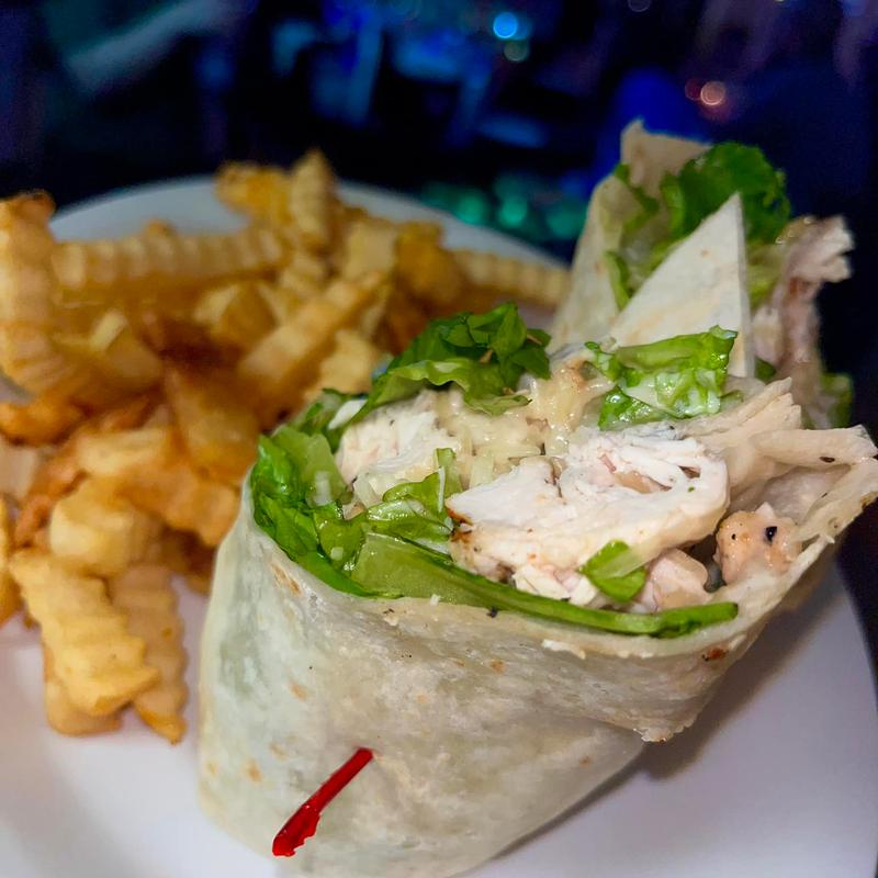 Crips romaine lettuce, tossed with parmesan cheese, served with ranch or bleu cheese, topped with a sliced chicken breast tossed in buffalo sauce.